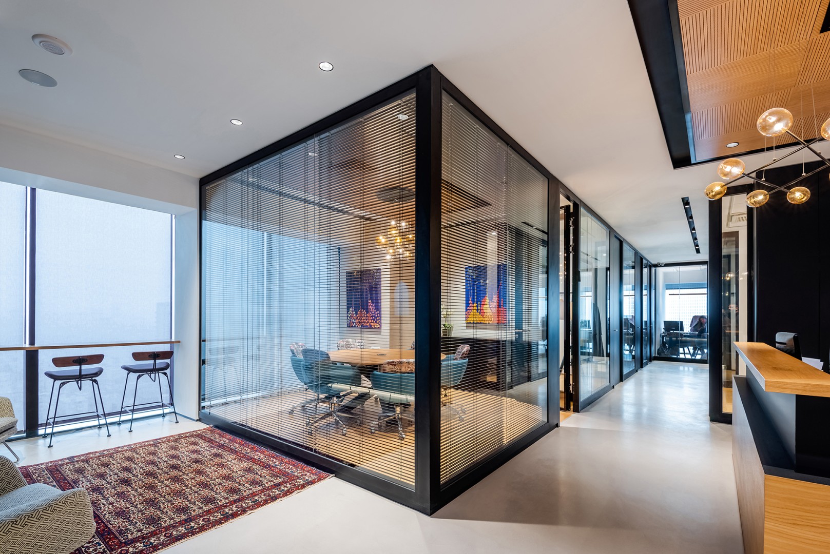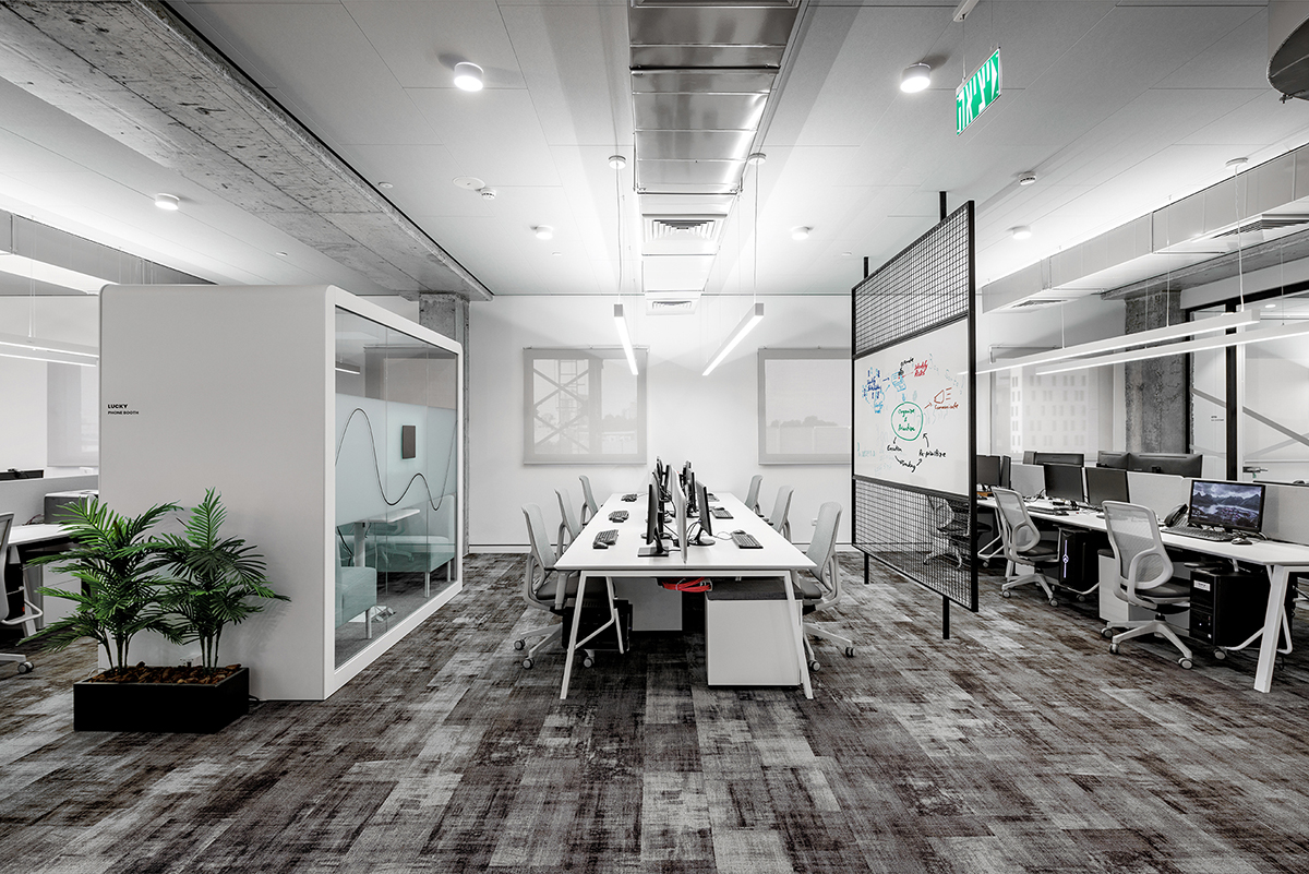 בסביבה משרדית, אקוסטיקה איכותית היא קריטית ליצירת מרחב עבודה שקט וממוקד. לשם כך, אנו משתמשים בחומרי גמר אקוסטיים בתקרות לצורך בליעת רעשים, מתכננים חדרים עם בידוד איכותי כדי להבטיח אטימות מרבית לרעש, ובחללי ה-Open Space מתקינים שטיחים מסיבים סינתטיים שמפחיתים רעשים ויוצרים חוויית הליכה שקטה ונעימה.